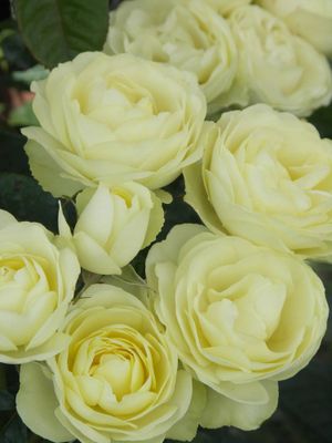 Award-winning rose displays clusters of unique lemon-to-lime-tinged blooms.